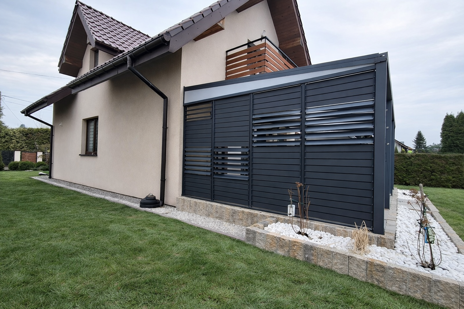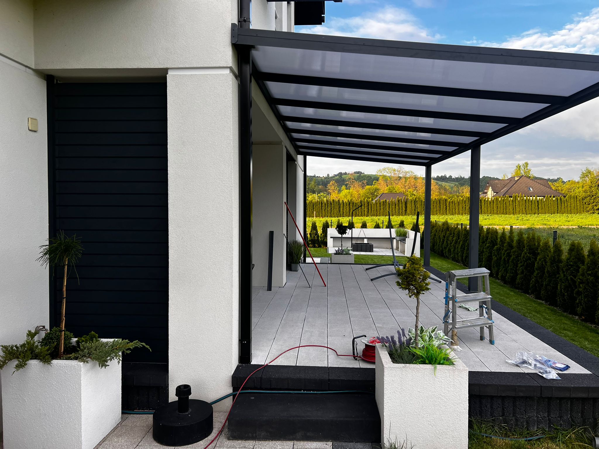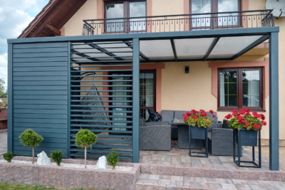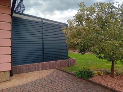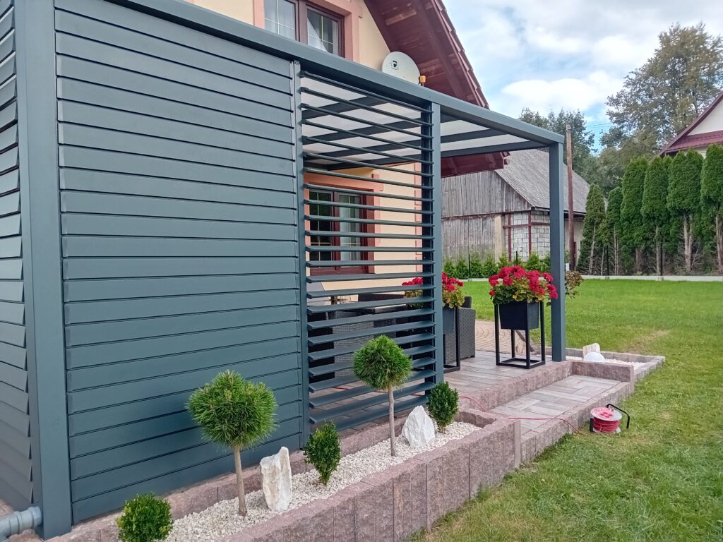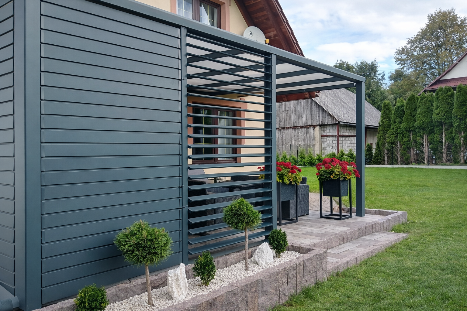 Aluminiowe ruchome deseczki to nie tylko praktyczna osłona boczna, ale też element, który podkreśli nowoczesny charakter całej przestrzeni tarasowej. Ich minimalistyczna forma i dopracowana linia świetnie harmonizują z architekturą współczesnych domów oraz z innymi systemami zabudowy, takimi jak pergole, markizy czy panele poliwęglanowe. Obracane lamele o szerokości około 11 centymetrów pokryte są powłoką malowania proszkowego, dzięki której kolor pozostaje trwały nawet po latach ekspozycji na słońce czy deszcz. To rozwiązanie sprawia, że deseczki nie tylko spełniają swoją funkcję techniczną, ale też estetyczną, tworząc spójną i elegancką całość z konstrukcją zadaszenia lub fasadą budynku. Ich obecność może podkreślić charakter tarasu, wprowadzić rytm i ciekawą fakturę oraz zwiększyć atrakcyjność wizualną całej zabudowy. System jest projektowany tak, by był możliwie dyskretny i jednocześnie podkreślał wysoką jakość wykonania, co sprawia, że deseczki stanowią praktyczny, ale też designerski element wykończenia.