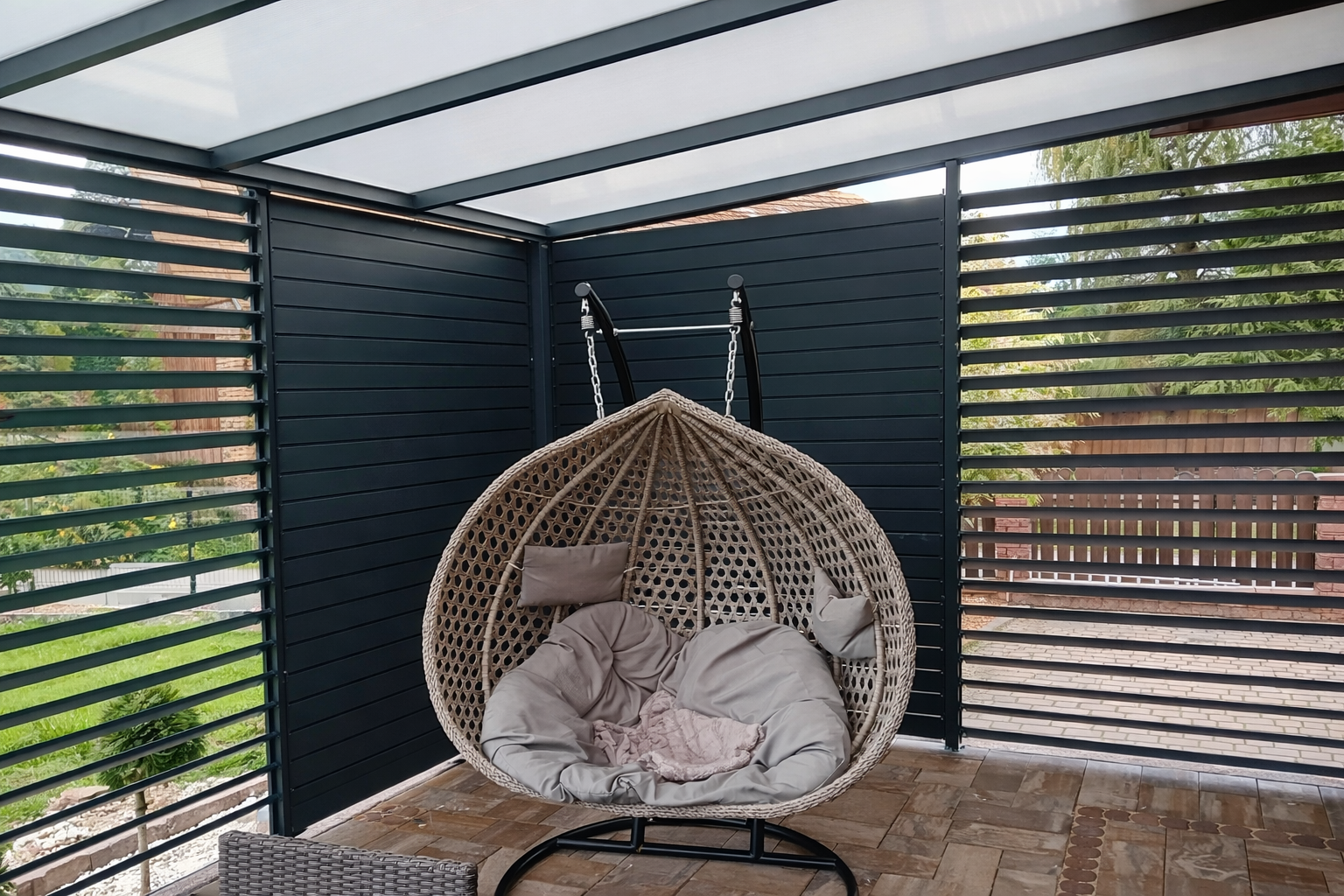 Zabudowa ścian z poliwęglanu chroni przed wiatrem i deszczem, a jednocześnie wpuszcza naturalne światło.